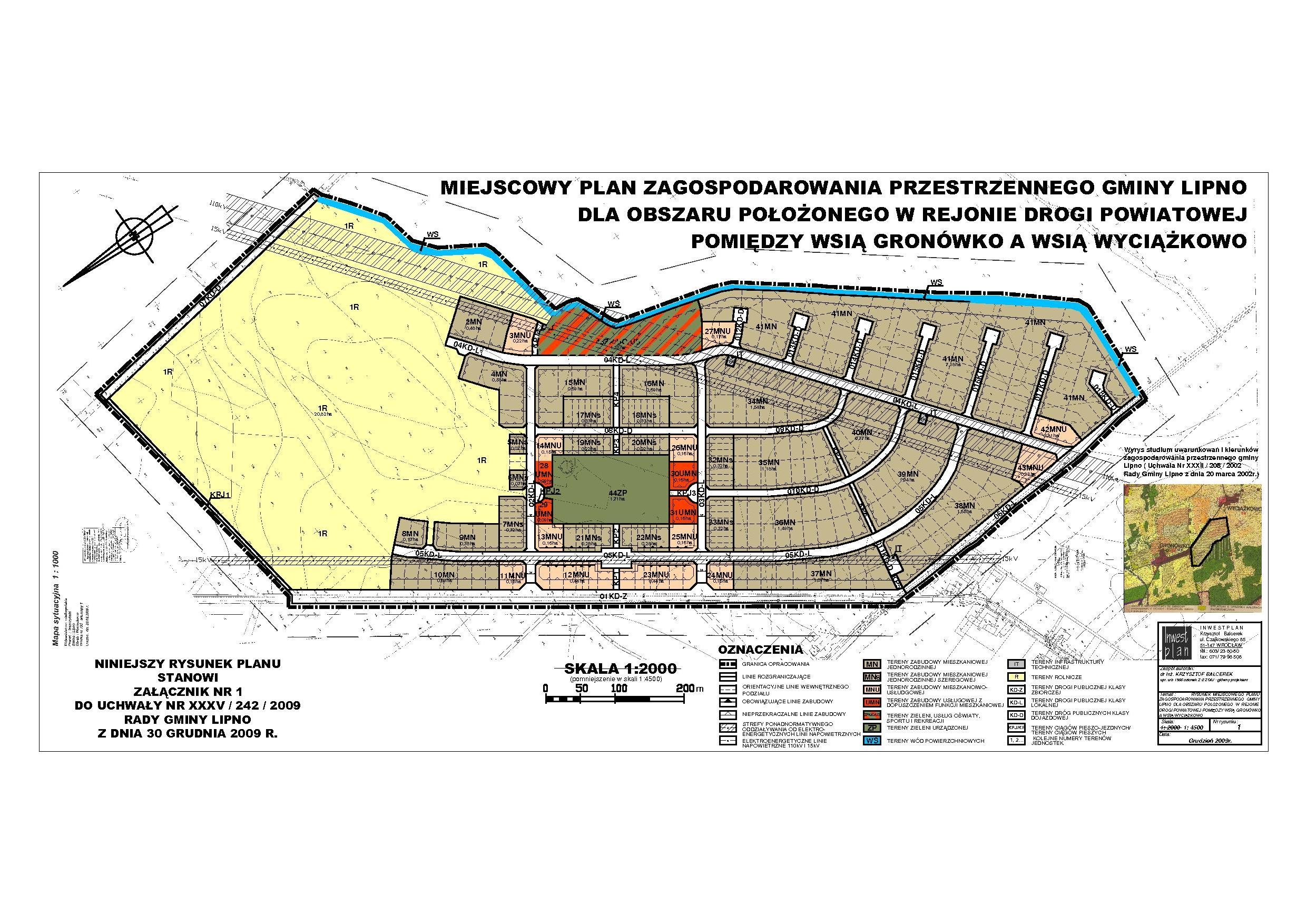 do Uchwały Nr XXXV / 242 / 2009 Rady Gminy Lipno z dnia 30 grudnia 2009r. w sprawie uchwalenia miejscowego planu zagospodarowania przestrzennego