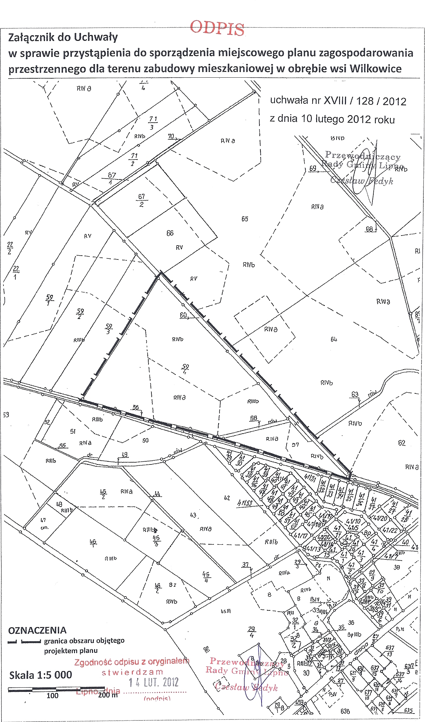 Treść zakładkiUCHWAŁA Nr XVIII/128/2012 Rady Gminy Lipno z dnia 10 lutego 2012 roku w sprawie przystąpienia do sporządzenia miejscowego planu zagospodarowania przestrzennego dla terenu zabudowy mieszkaniowej w obrębie wsi Wilkowice.